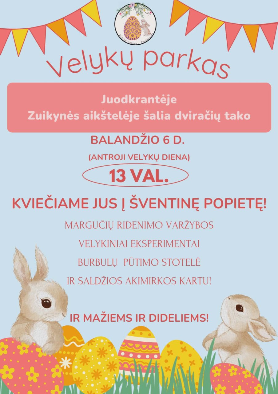 Balandžio 6 d. 13 val. Juodkrantėje, Zuikynės aikštelėje šalia dviračių tako, vyks šventinė popietė „Velykų parkas 2026“.