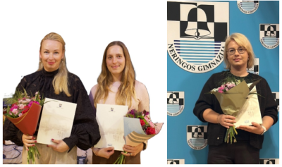 Neringos gimnazijos pradinių klasių mokytojai metodininkei Ramunei Kubiliūtei ir dailės mokytojai metodininkei, technologijų vyr. mokytojai Jolitai Kundrotaitei bei Neringos meno mokyklos kanklių mokytojai metodininkei Ievai Pumputytei-Macevičei.